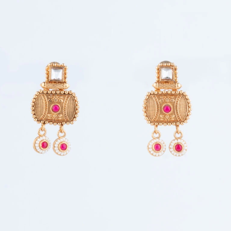 Care Instructions: To preserve the brilliance of your Rajwadi Necklace Set, avoid direct contact with water, perfumes, and other chemicals. Clean gently with a soft cloth after each wear to remove dust or oils. Store separately in a fabric-lined box to prevent scratching and tarnishing.